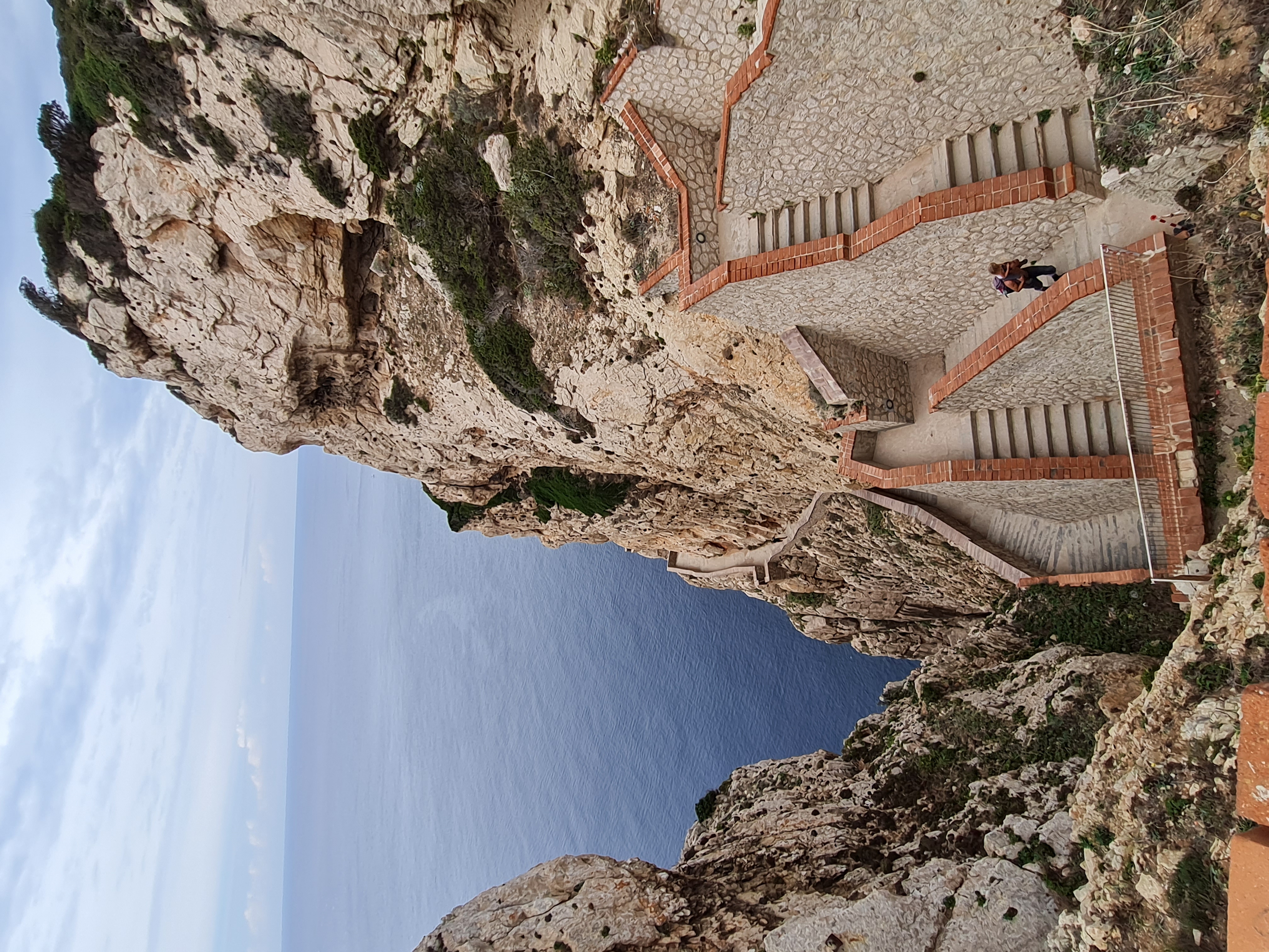 Nach einem ausgiebigen Frühstück, sind wir gegen 11 Uhr zur Neptungrotte gefahren (ca. 1/2 Stunde für 23 km). Leider hatten wir heute keinen Sonnenschein, aber zum Glück auch keinen Regen. Geparkt haben wir entlang der Straße ca. 500 m bis zum Ticketcenter(14 €/P.). Wenn wir zügig runterlaufen, schaffen wir noch die Führung um 12 Uhr. Also gingen wir ohne anzuhalten die 620 Stufen bis zum Eingang der Grotte. Gerade noch geschafft. Die Grotte ist sehr beeindruckend und sehr groß. Die muss man gesehen haben und zu Fuß auch schöner, wie wenn man den Bootsausflug dorthin gemacht hätte. Es darf fotografiert werden. Danach sind wir mit Pusteholen- und Fotopausen die vielen Stufen wieder hochgelaufen. Auf dem Rückweg haben wir noch das Nuraghedorf Palmavera besichtigt. Gegen 15 Uhr wieder in Alghero zurück mit viel Durst. Abends waren wir in Hafennähe Paella essen. Als Vorspeise gab es einen polpo butterzart in Tomatensoße mit Oliven.