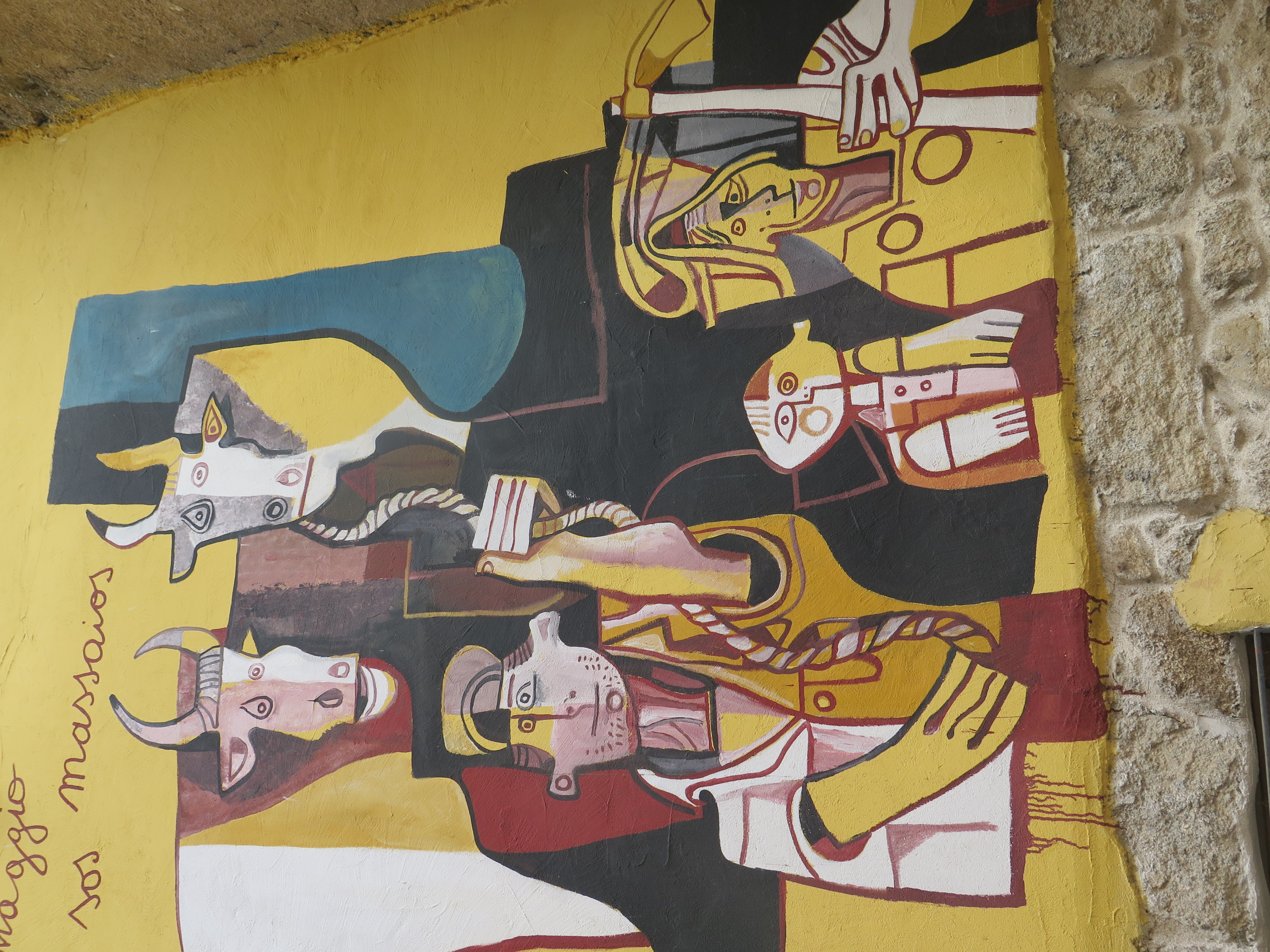 Von unserer Unterkunft Sant Elene in Dorgali aus gestartet nach dem Frühstück ca. 9:30 Uhr. Erste Anlaufstelle war Orgonsolo, der gefährlichtste Ort Sardiniens Ende 19. Jahrhundert. Hier wurden 7 Mordfälle/Jahr durchschnittlich gemeldet. Jetzt ist es allerdings ein touristischer Ort der aufgrund der tollen Wandmalereien sehr sehenswert und beliebt ist. Einen gemütlichen Kaffee kann man an jeder Ecke trinken.