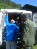 Frühstück 07:30, um 9:00 ging es dann mit der Ambulance zurück. Der Fahrer vorne rechts, Rita und ich vorne links und hinten 7 Personen (Habibu Guide), Waiter, Koch und 4 Porter) mit dem ganzen Gepäck.